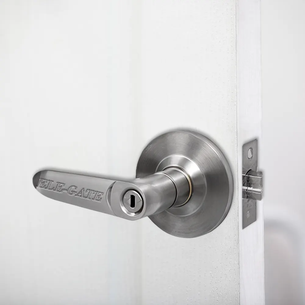Cerradura para baño con elegante acabado en níquel satinado, ideal para puertas de madera o metal, ya sean derechas o izquierdas. Cuenta con mecanismo cilíndrico y pestillo sencillo, brindando privacidad y funcionalidad. Compatible con puertas de 35 a 50 mm (1-3/8″ a 2″) de espesor y backset ajustable de 60 a 70 mm (2-3/8″ a 2-3/4″). Puede instalarse en puertas nuevas o ya existentes. Incorpora función ranura/botón para apertura de emergencia desde el exterior.