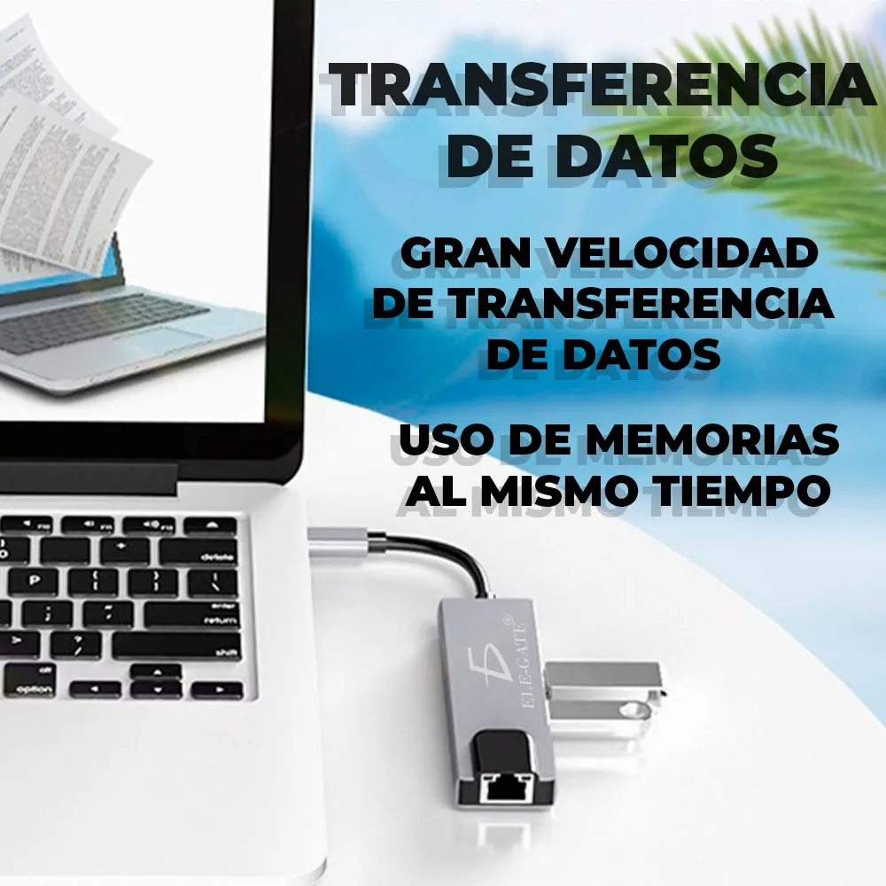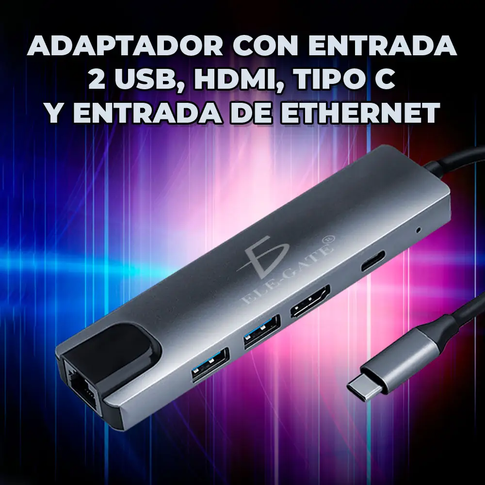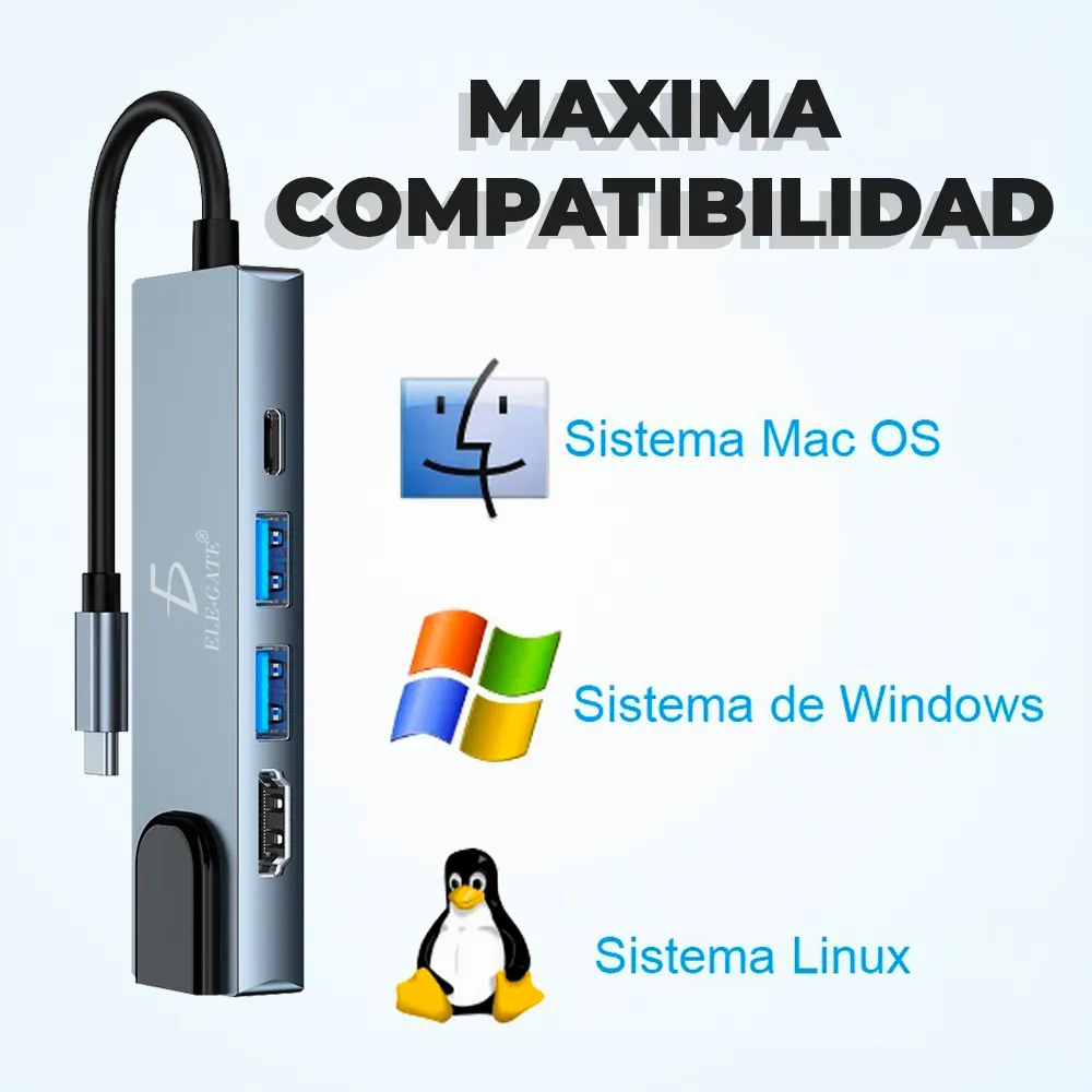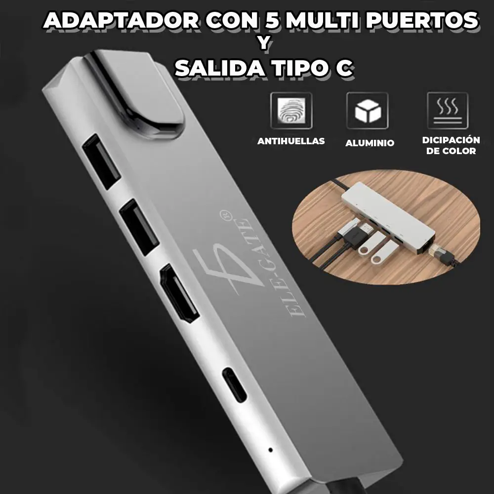 Adaptador con 5 puertos y salida tipo-c Con Cargar Rapida 100W