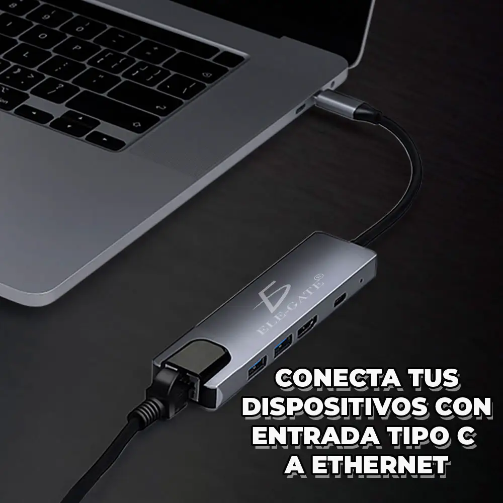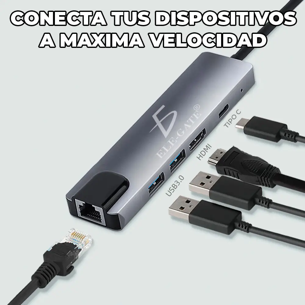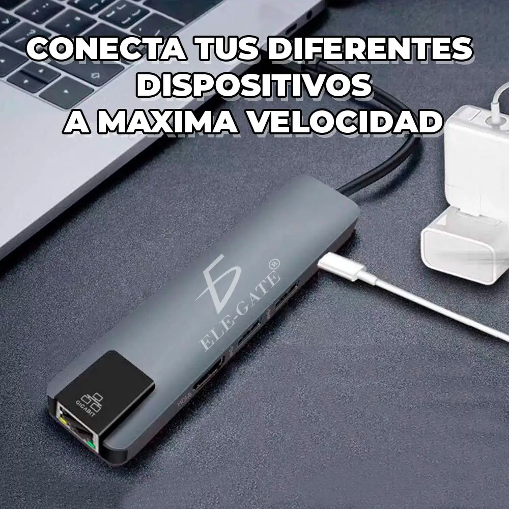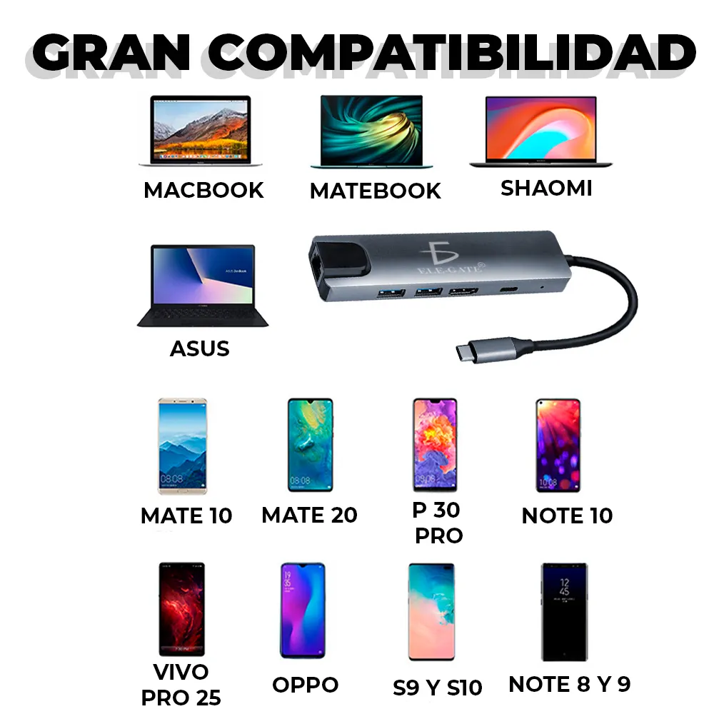 Adaptador con 5 puertos y salida tipo-c Con Cargar Rapida 100W