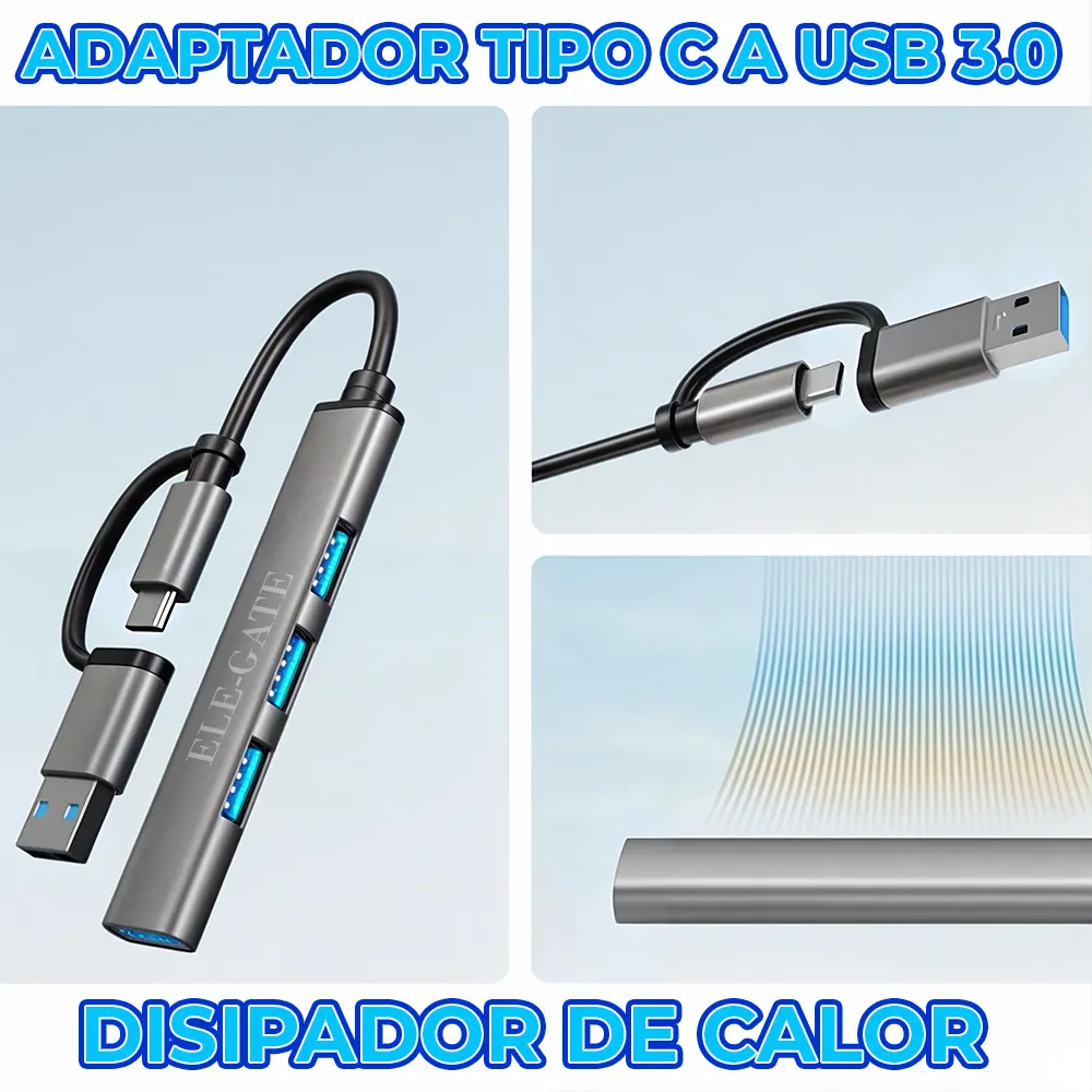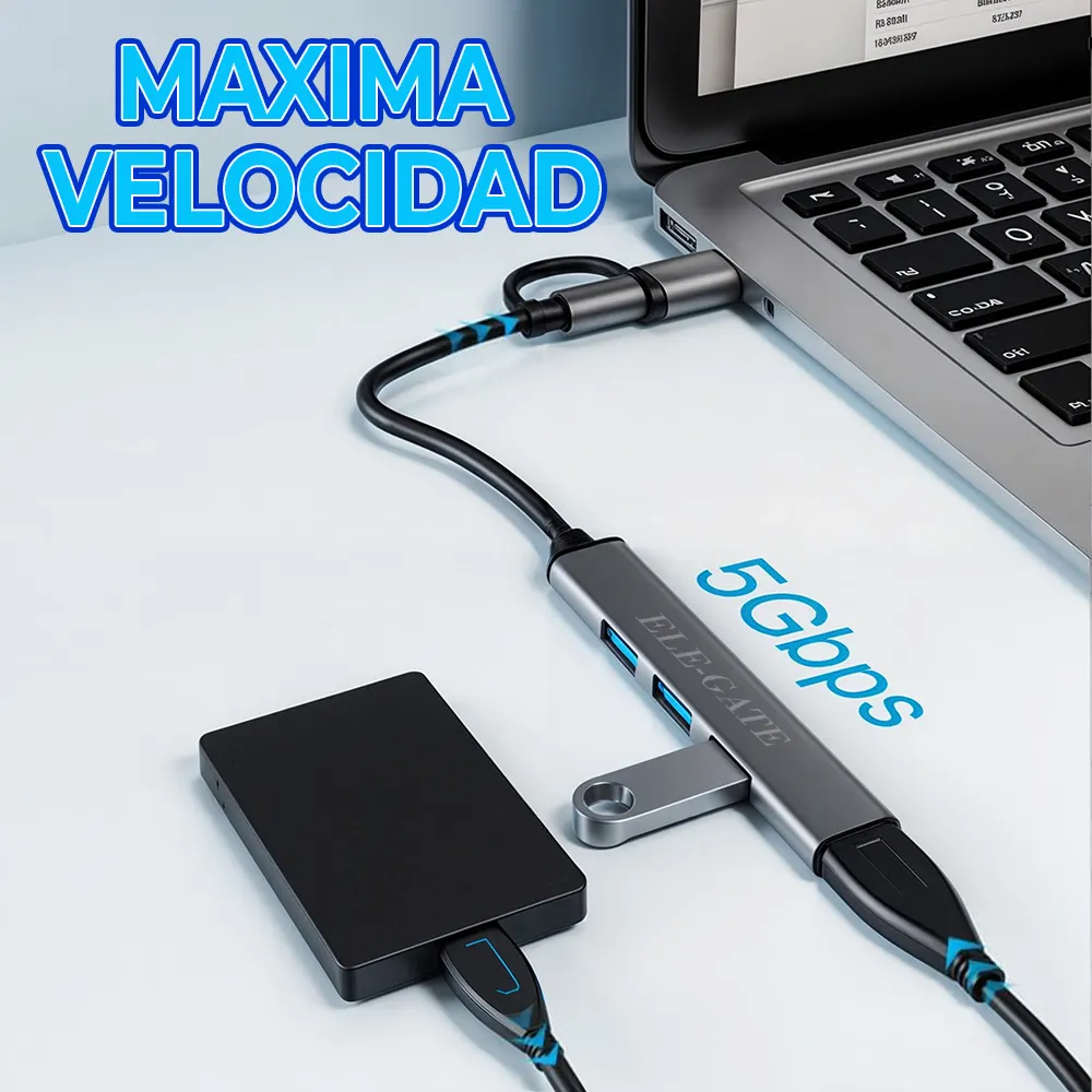 ✅ Expansión de puertos: Convierte una sola entrada USB-C en 4 puertos USB adicionales (1 USB 3.0 + 3 USB 2.0).