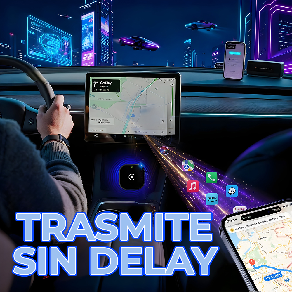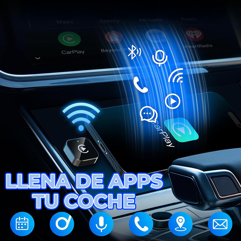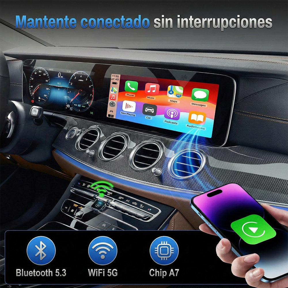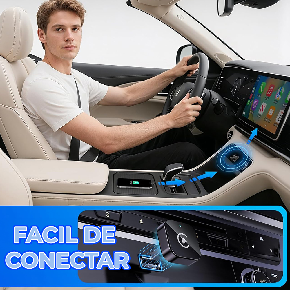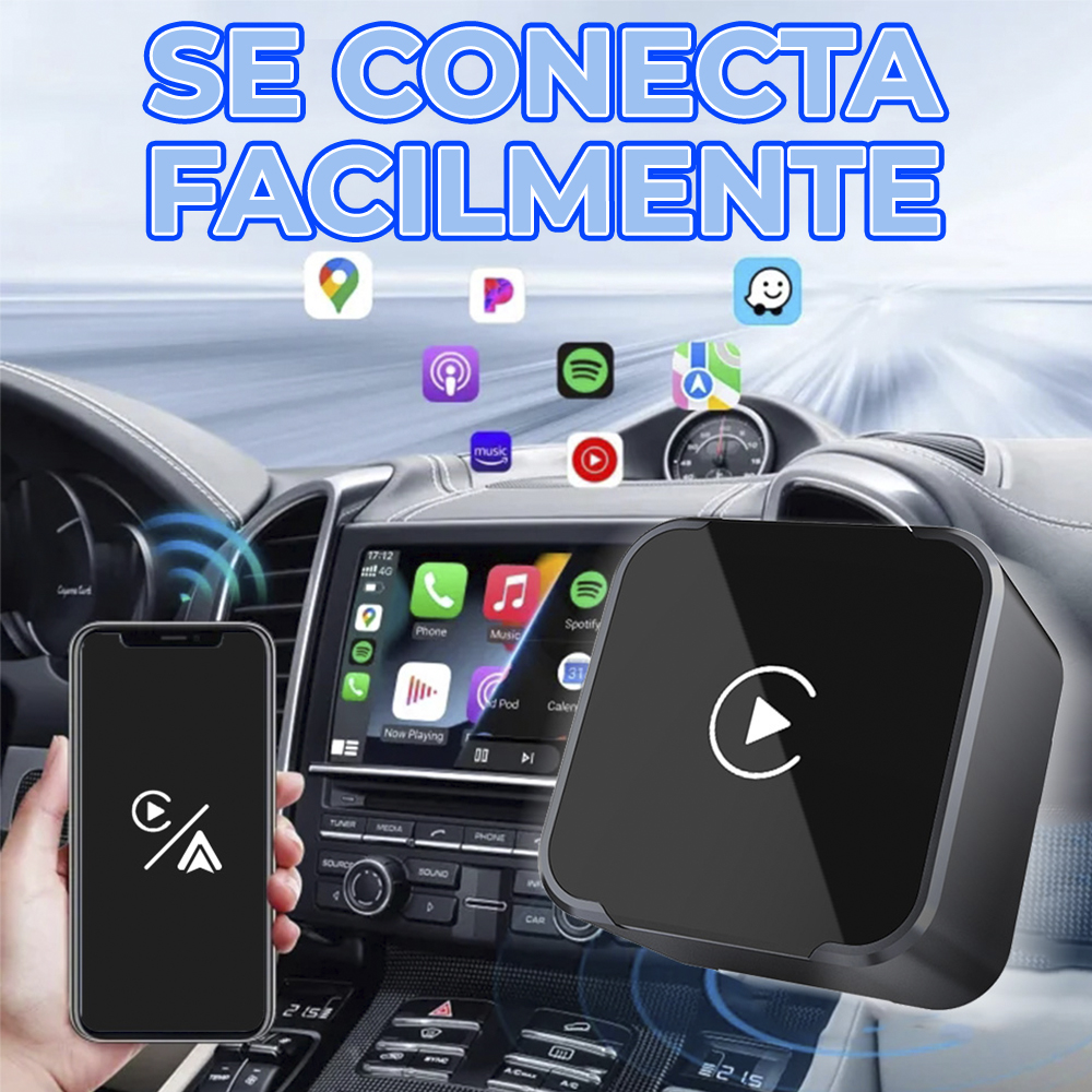 Convierte tu CarPlay o Android Auto con cable en totalmente inalámbrico en segundos. Disfruta de una experiencia más limpia, moderna y sin cables molestos dentro de tu vehículo.