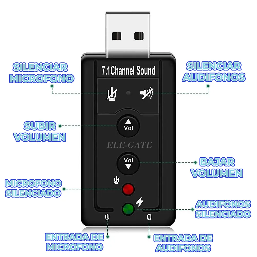 Adaptador Usb 2.0 Tarjeta De Sonido 7.1 Canales Audio 3d Pc