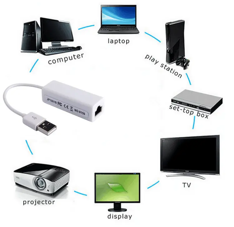 Adaptador Usb Ethernet Red Lan Ethernet Rj45 A Usb 2.0 para windows 7 8 10.11 de MAC con driver