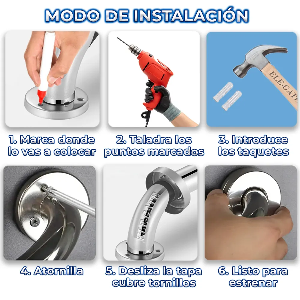 Agarradera de Baño de Acero Inoxidable soporta hasta 100 kilos ideal para bañeras o baños para evitar caídas o resbalones.