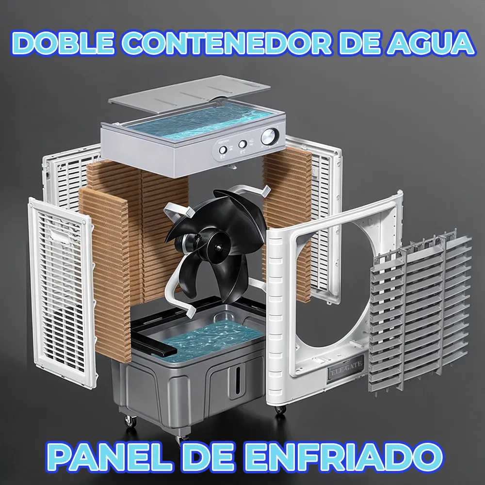 Mantén tus espacios frescos con este potente Aire Acondicionado Portátil de 60 litros, diseñado para ofrecer un rendimiento óptimo gracias a su sistema de enfriamiento por evaporación. Cuenta con tres velocidades ajustables que permiten regular la intensidad del flujo de aire según tus necesidades. Incluye 6 cajas de hielo para potenciar el enfriamiento y brindar un ambiente aún más agradable. Su estructura está equipada con ruedas con freno, lo que garantiza una fácil movilidad y estabilidad en cualquier espacio. Ideal para el hogar, la oficina o áreas comerciales, proporcionando un confort térmico eficaz y práctico.