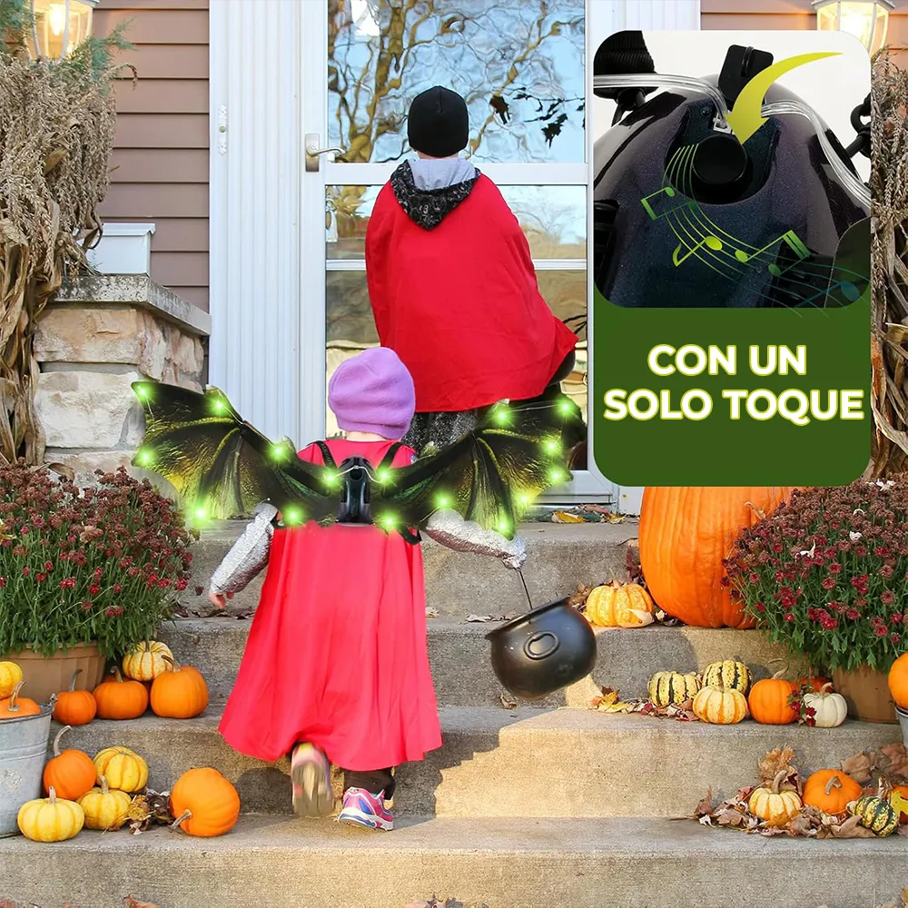 Perfectas para Halloween, fiestas temáticas o cumpleaños, estas alas añaden un toque mágico y sorprendente con su movimiento realista, luces multicolor y efectos de sonido espectaculares.