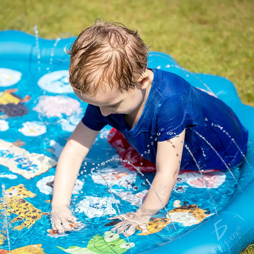 Juguetes de agua perfectos para exteriores Esta piscina con aspersor es adecuada, juguete para el césped de la playa al aire libre y fiestas en la piscina de verano. La mejor opción para mantener a los niños frescos y emocionados en los calurosos días de verano. Perfecto para batallas acuáticas de verano, parques acuáticos, fiestas acuáticas, piscinas, playas y actividades al aire libre.