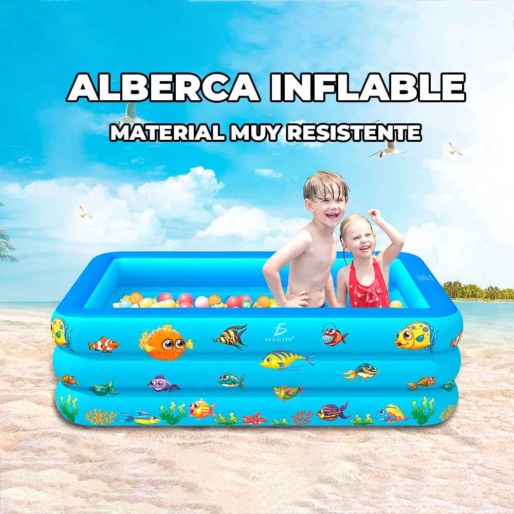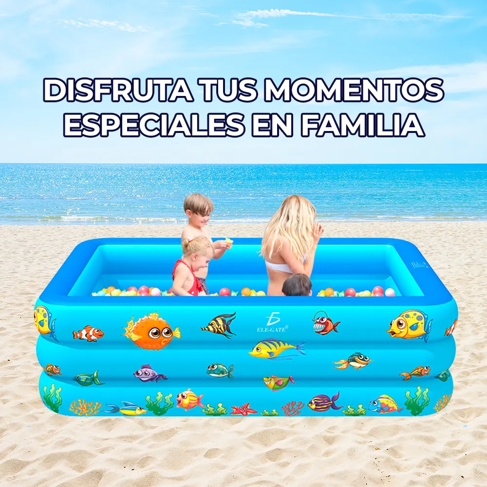 Gran regalo para el verano: el fascinante diseño marino combina perfectamente con la piscina acuática, que es muy atractiva para los niños. Alberca Inflable Rectangular 150cm.