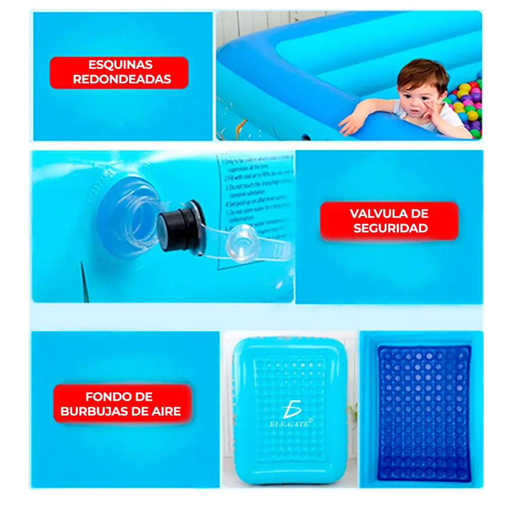 Juega en interiores: convierte la piscina al aire libre en un pozo de pelotas para que tu hijo juegue en interiores, sin estar expuesto a los rayos del sol. 3 cámaras de aire individuales garantizan que no haya fugas de agua o aire para una piscina totalmente inflada y estable