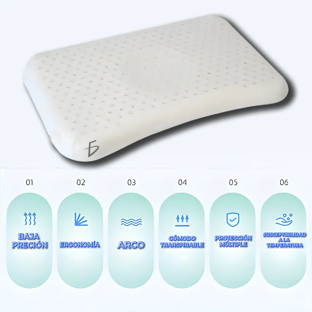 - Almohada de espuma viscoelástica (Memory Foam) que se adapta a la forma del cuerpo para un soporte personalizado.