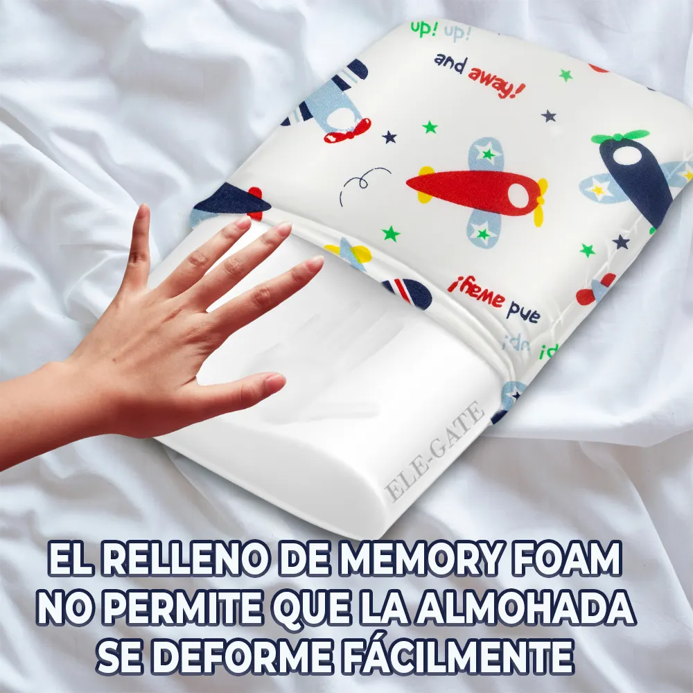 Almohada Ortopédica de Memory Foam para niños, ideal para crear una postura adecuada a la hora de dormir. Con diseños divertidos y con tecnología hipoalergénica