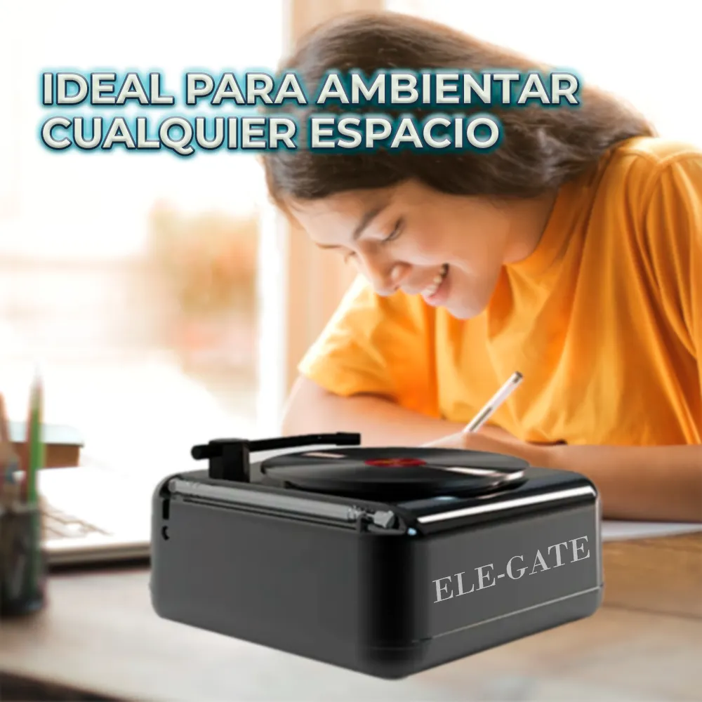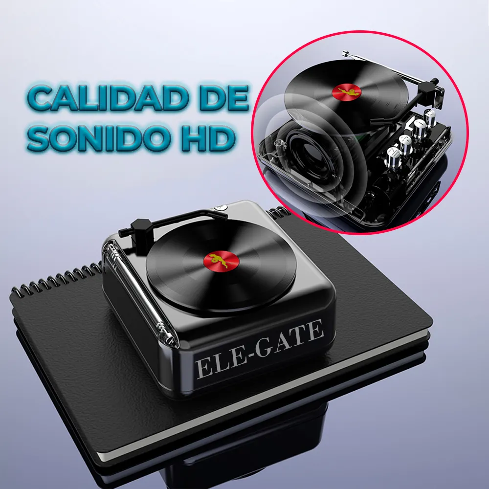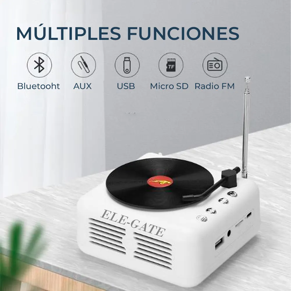 Altavoz Bluetooth Inalámbrico con Diseño Retro de Tocadiscos – Sonido Estéreo de Alta Potencia y Radio FM USB/Micro SD