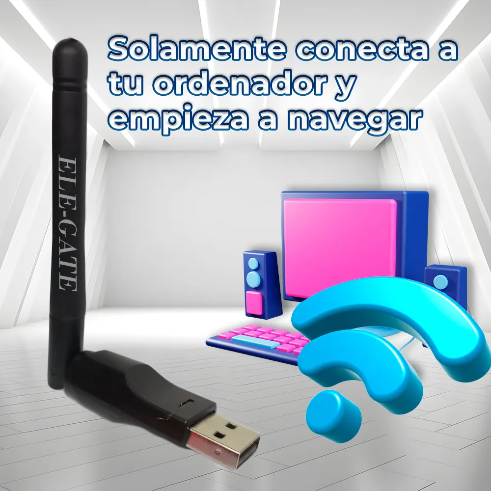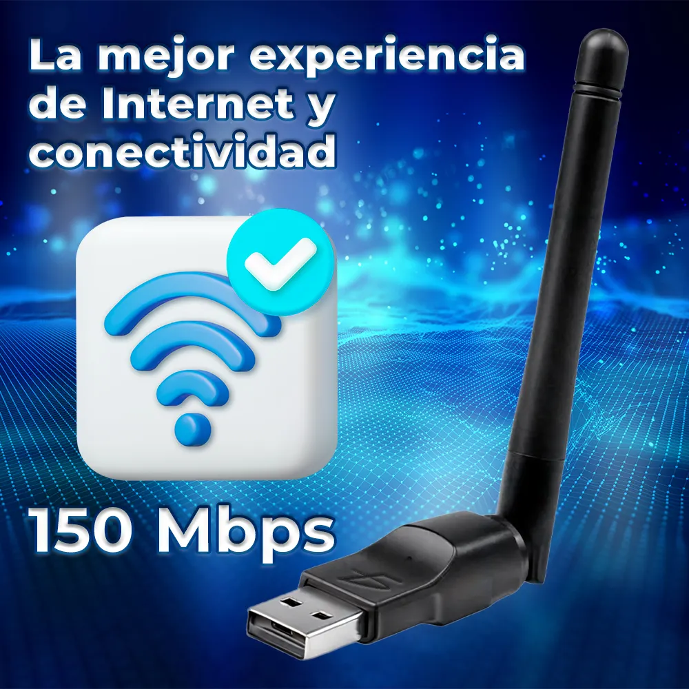 - Antena USB Wireless que ofrece velocidades de hasta 150 Mbps.