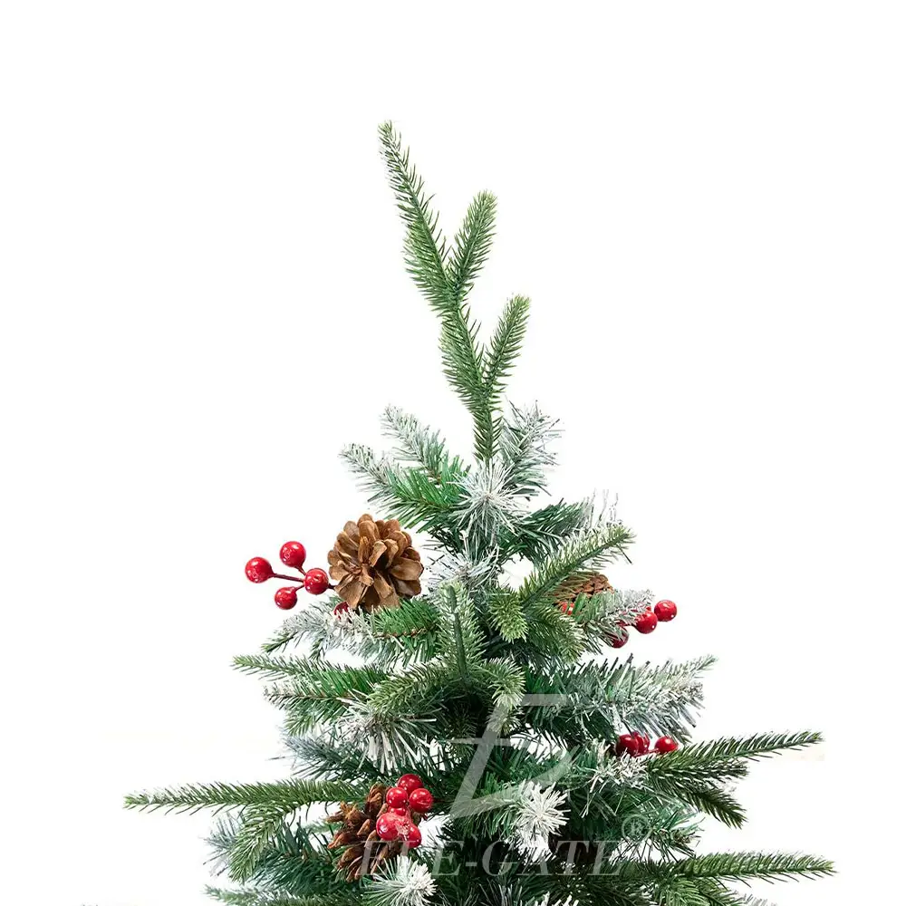 - Color: Verde con efecto nevado, piñas decorativas y frutos rojos.