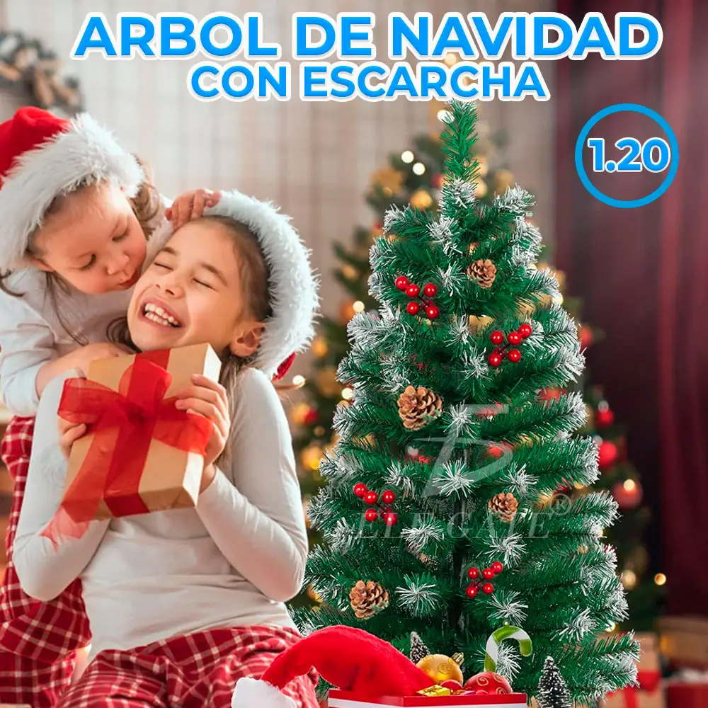 - Color: Verde con efecto nevado, piñas decorativas y frutos rojos.