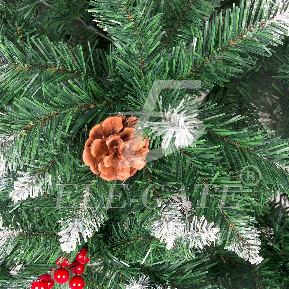Árbol de Navidad Artificial Verde con Efecto Nevado, Piñas y Frutos Rojos para una Decoración Festiva