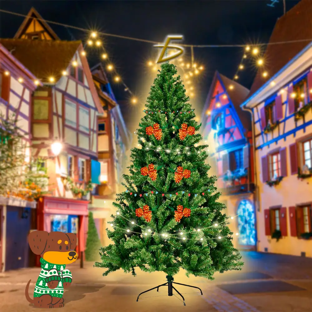 Árbol de Navidad Verde Artificial de 210 cm Con ramas flexibles y follaje abundante que logran un efecto realista y natural en tu arbol de navidad.