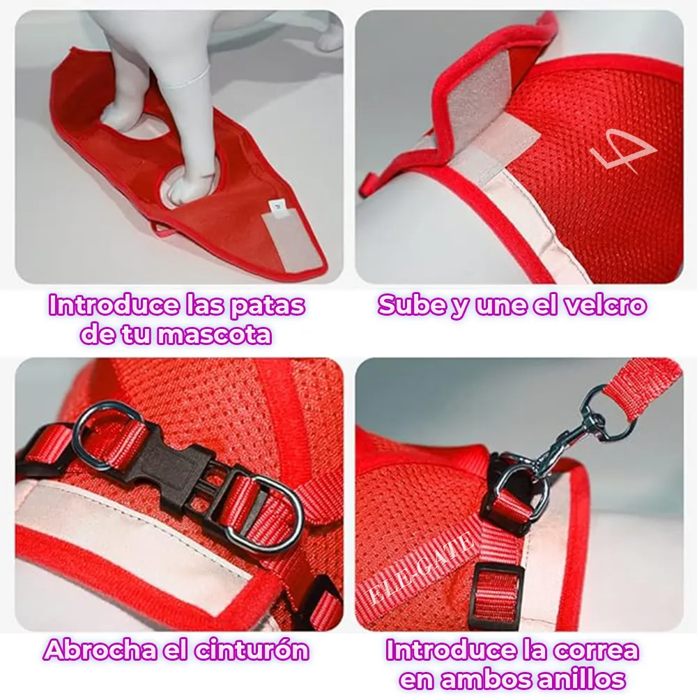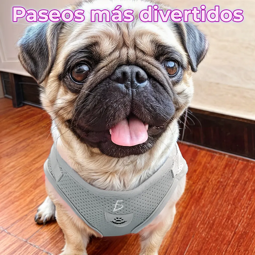 - Malla suave y reflectante: La malla suave no solo es cómoda para tu mascota, sino que también permite una buena ventilación durante los paseos. Además, la presencia de material reflectante en el arnés aumenta su visibilidad en condiciones de poca luz, lo que mejora su seguridad.