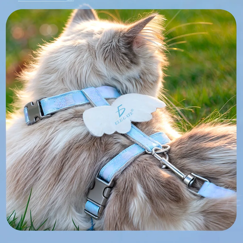 En resumen, nuestro conjunto de arnés y correa para mascotas pequeñas con detalle de alas ofrece seguridad, comodidad y estilo, asegurando que tu mascota vuele con gracia y encanto en cada paseo.