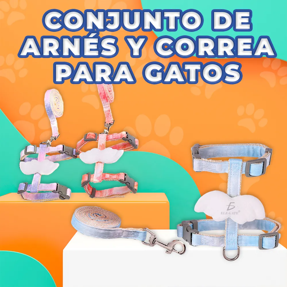 Arnés y Correa para Mascota Pequeña con detalle de alas. Material resistente y duradero ajustable colores Kawaii