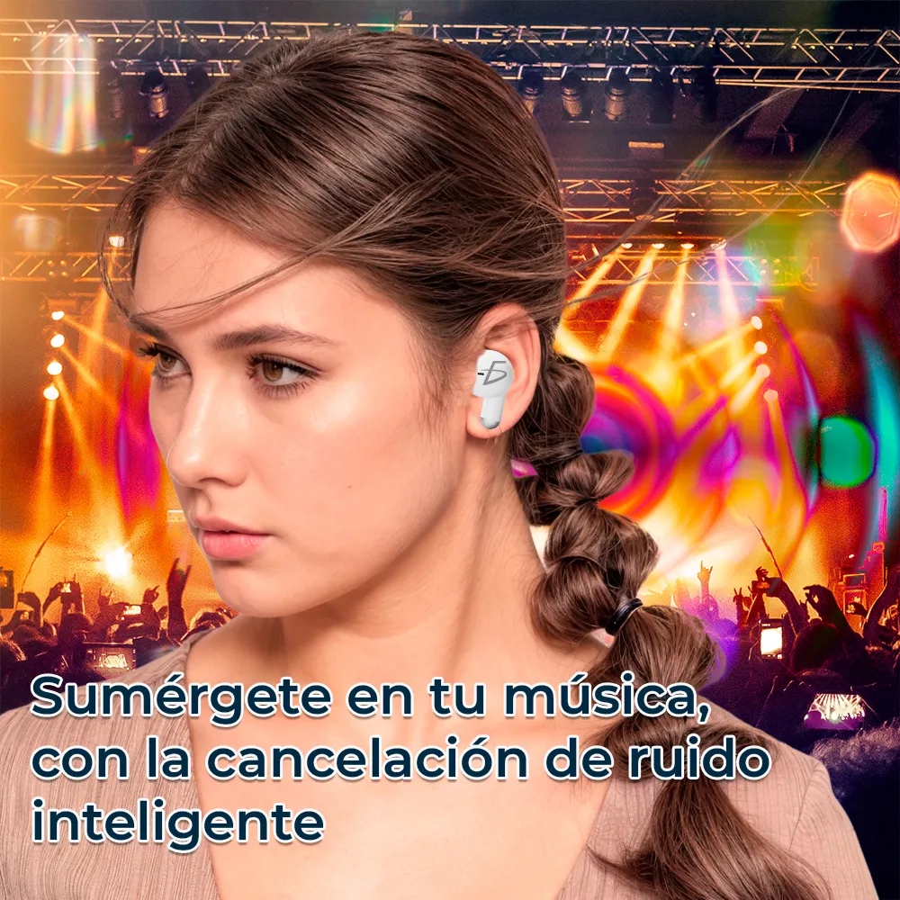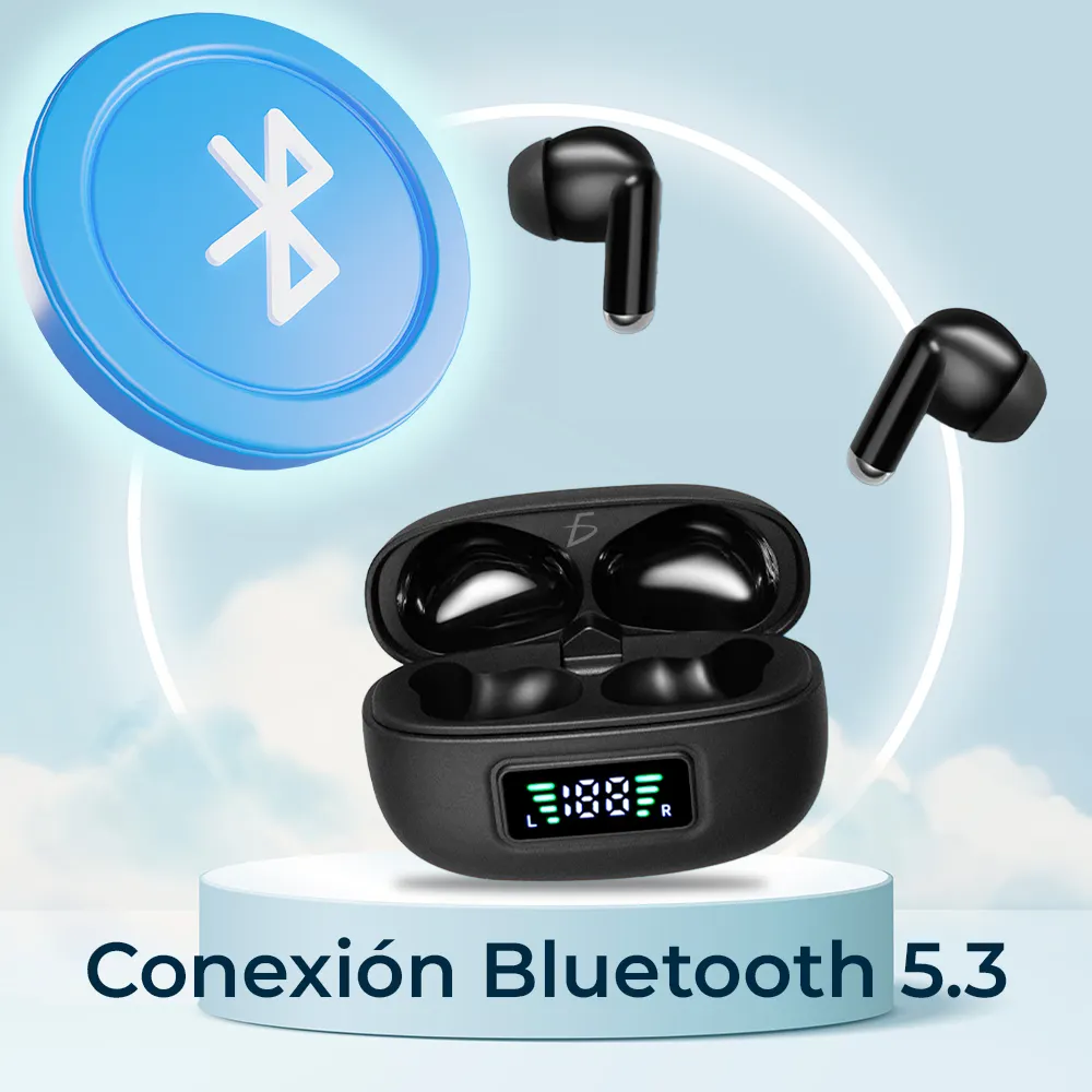 Audífonos Inalámbricos Bluetooth 5.3 con Sonido Estéreo de Alta Fidelidad con Pantalla Indicadora de Batería. Gracias a su cargador con indicador independiente de carga siempre sabrás la carga de cada uno de tus audífonos. Gracias a su diseño compacto, siempre podrás traerlos contigo.