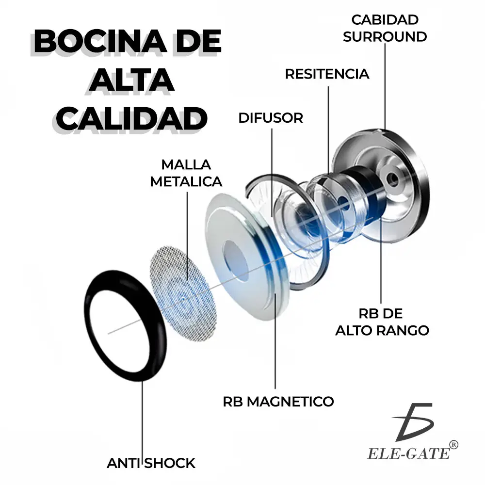 Tienen una gran bocina de alta calidad con las siguientes características: anti shock, malla metálica, difusor, resistencia, rb de alto rango.