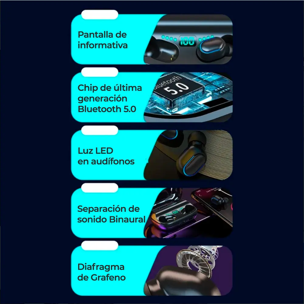 Sincronización automática, se emparejan rápidamente con tus audífonos una vez que se despegan de su caja de seguridad. Audífonos Inalámbricos Bluetooth 5.0.