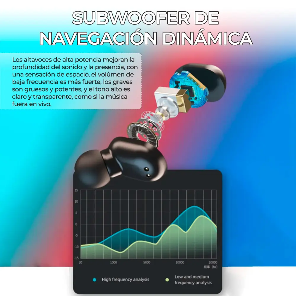 Subwoofer de navegación dinámica, los altavoces de alta potencia te darán la sensación de espacio, el volumen de baja frecuencia es mas fuerte, el tono alto es mas claro y potente que sentirás que la música esta en vivo.