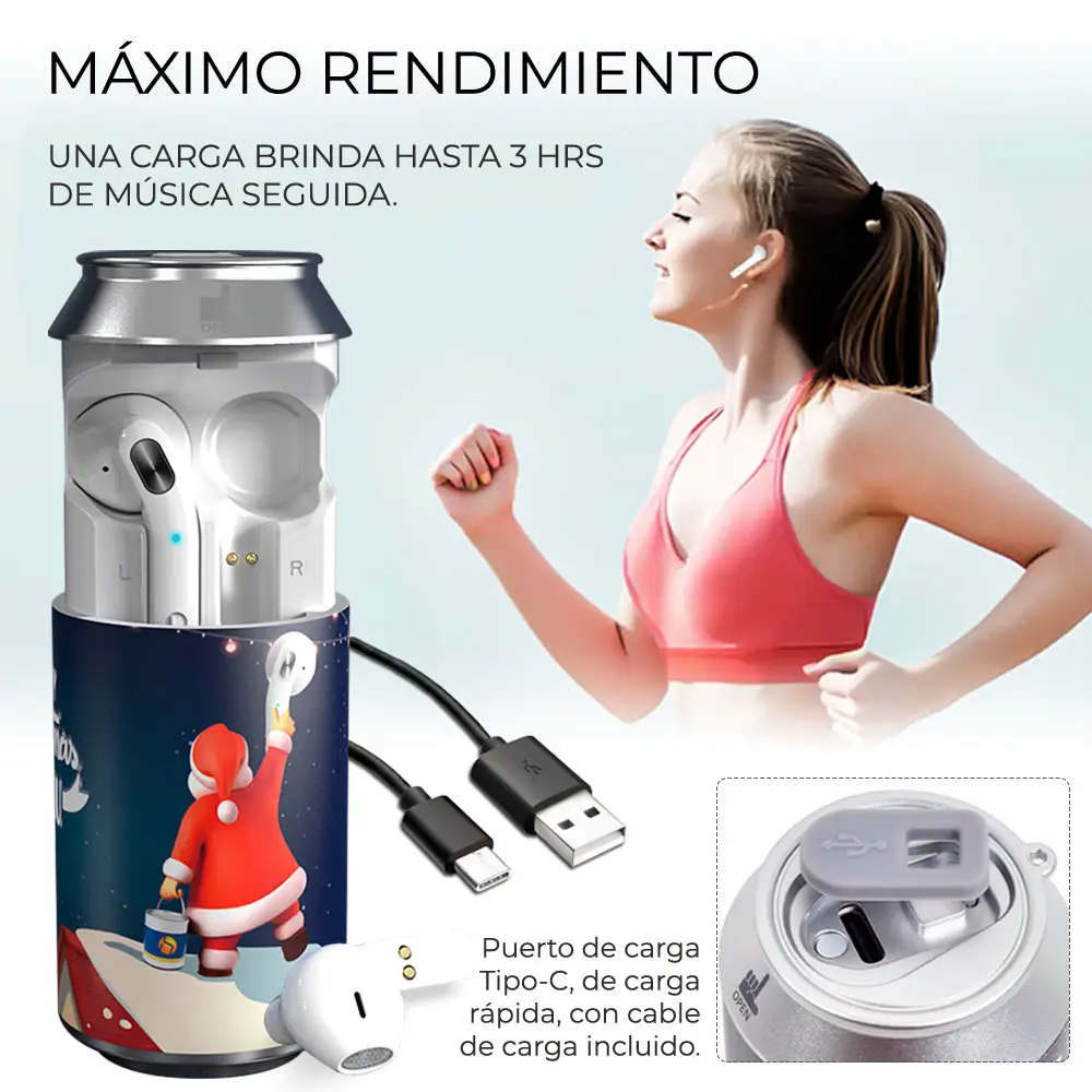 La caja de carga está equipada con una función de carga USB y solo tarda 2 horas en cargarse por completo.