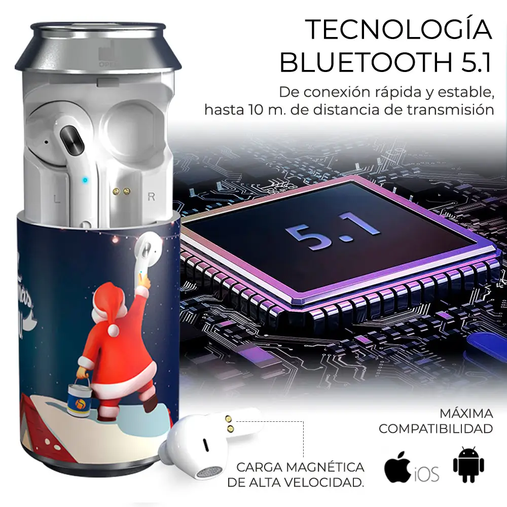 La tecnología de conexión Bluetooth 5.1 puede lograr una conexión más estable sin preocuparse por la interrupción. Cuando necesite usar auriculares inalámbricos, simplemente abra la caja de carga, instale los auriculares Bluetooth y los auriculares se conectarán automáticamente a Bluetooth. Luego, puede disfrutar de una música clara y una experiencia de llamada.