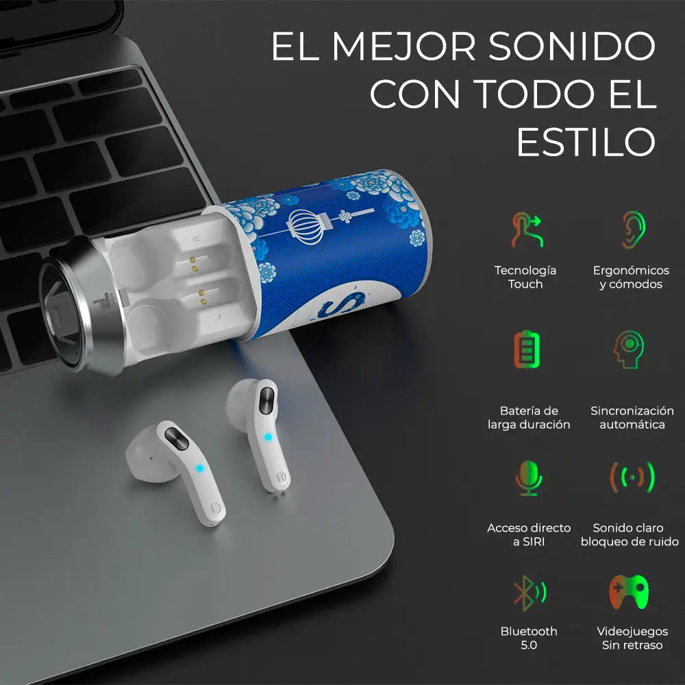 Calidad y diseño de sonido estéreo 3D únicos, auriculares inalámbricos, diafragma exquisito y chips cuidadosamente afinados, brindan un audio verdadero y equilibrado, lo que le permite disfrutar de detalles originales y ricos.