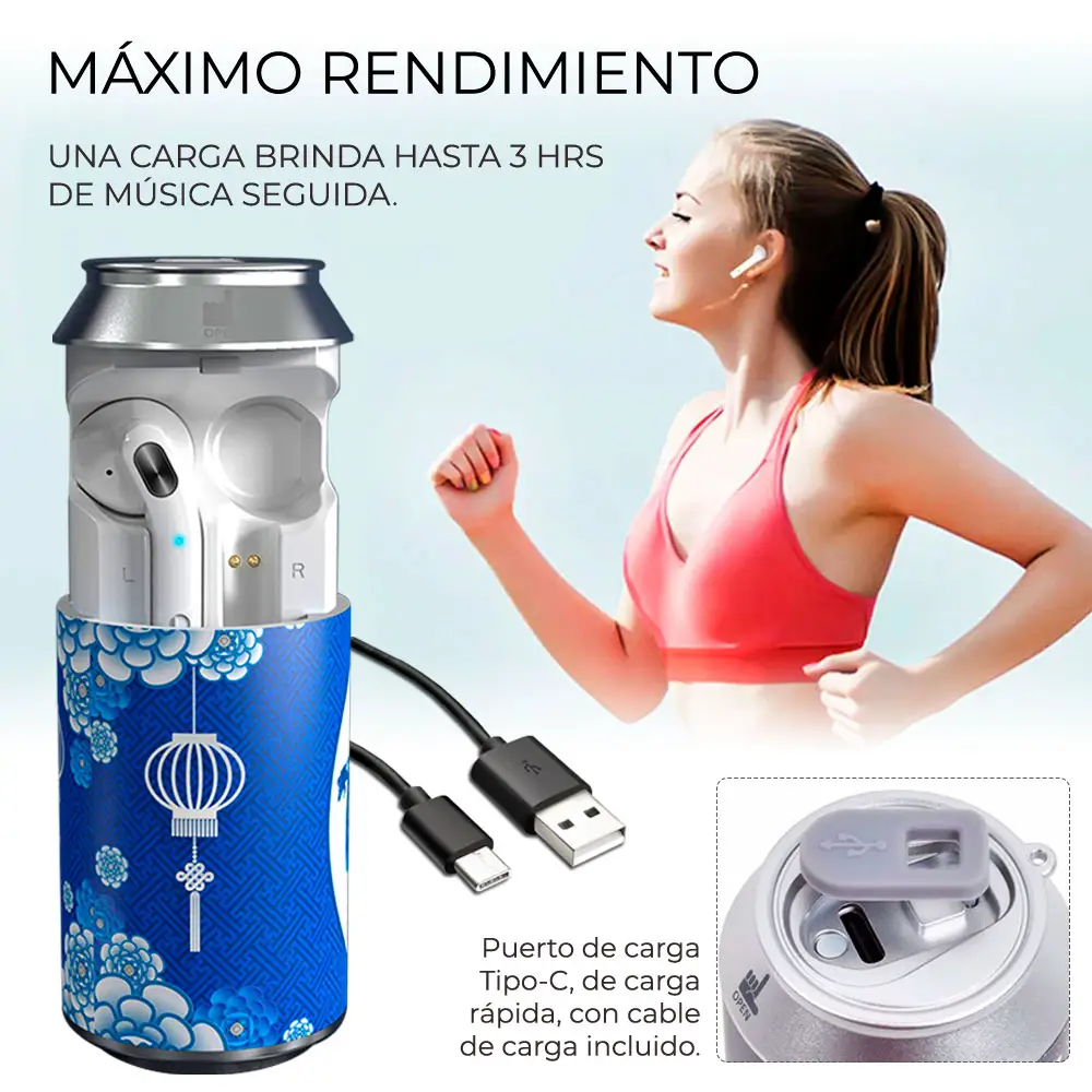 La caja de carga está equipada con una función de carga USB y solo tarda 2 horas en cargarse por completo.