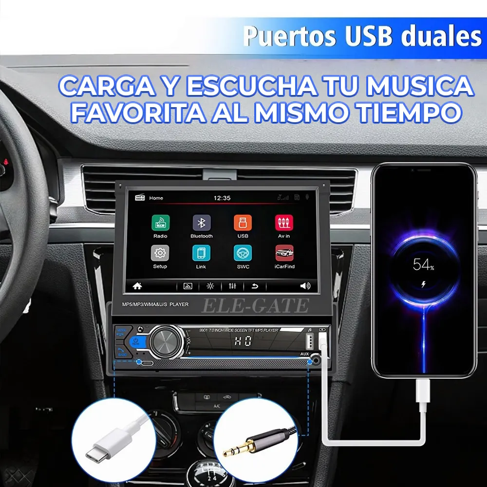 - Pantalla táctil retráctil HD de 7 pulgadas: Disfruta de una visualización clara y nítida de tus videos y aplicaciones favoritas.