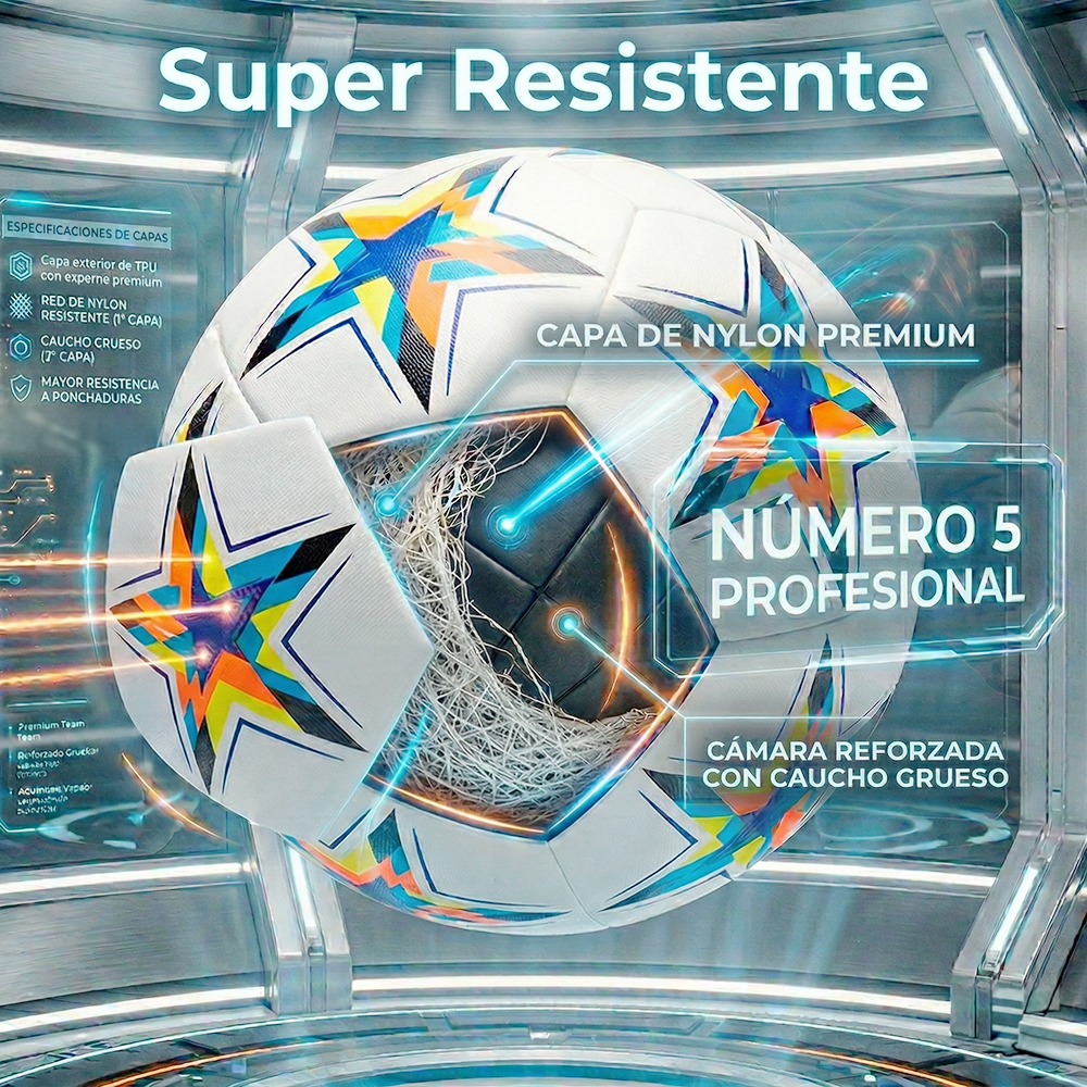 Fabricado con materiales de alta calidad y acabados cocidos, este balón ofrece mayor resistencia, durabilidad y un desempeño profesional en cada jugada gracias a sus dos capas, una denylon premium y un cuacho refozado ideal para que no se ponche el balon y dure mucho tiempo mas. Su construcción garantiza un mejor control, precisión en los tiros y excelente rendimiento tanto en entrenamientos como en partidos.