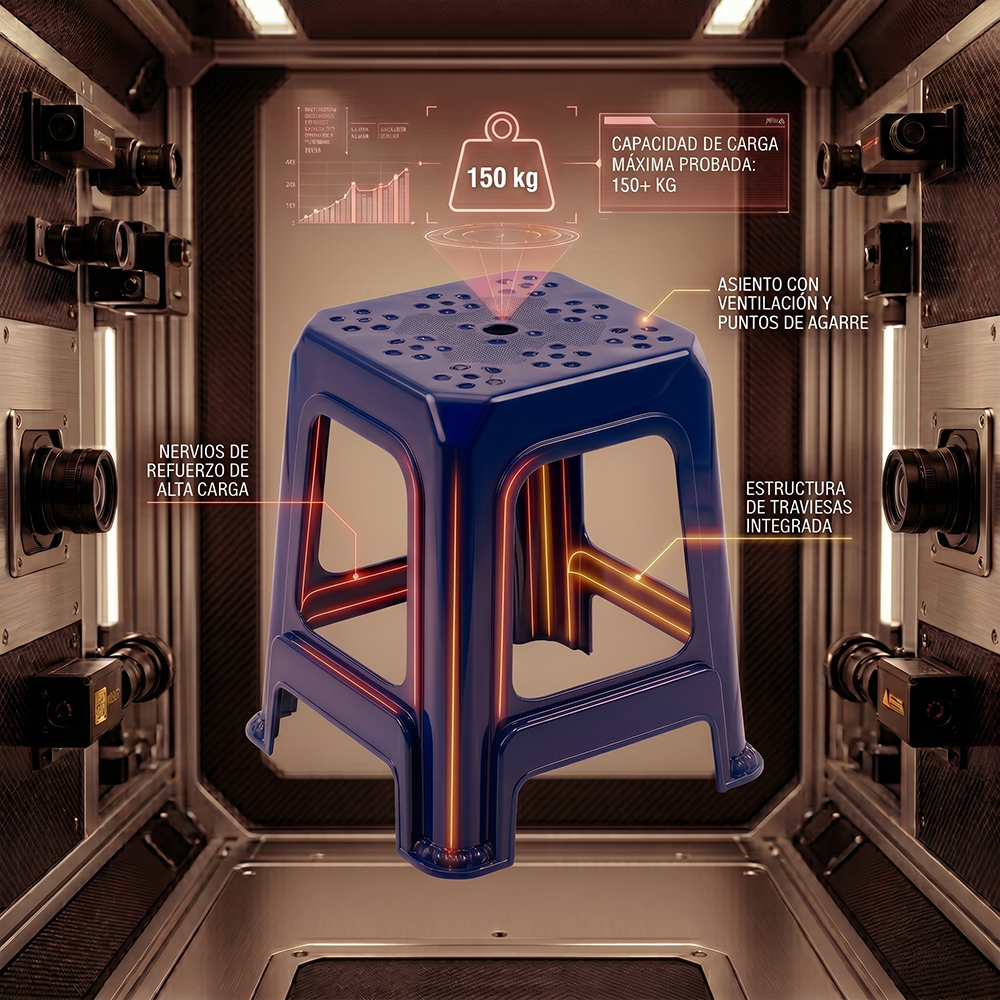 Este banco de plástico está diseñado para ofrecer una combinación ideal de resistencia, funcionalidad y estilo. Fabricado con polipropileno (PP) reforzado al 25% y libre de BPA, garantiza seguridad y durabilidad para el uso diario.