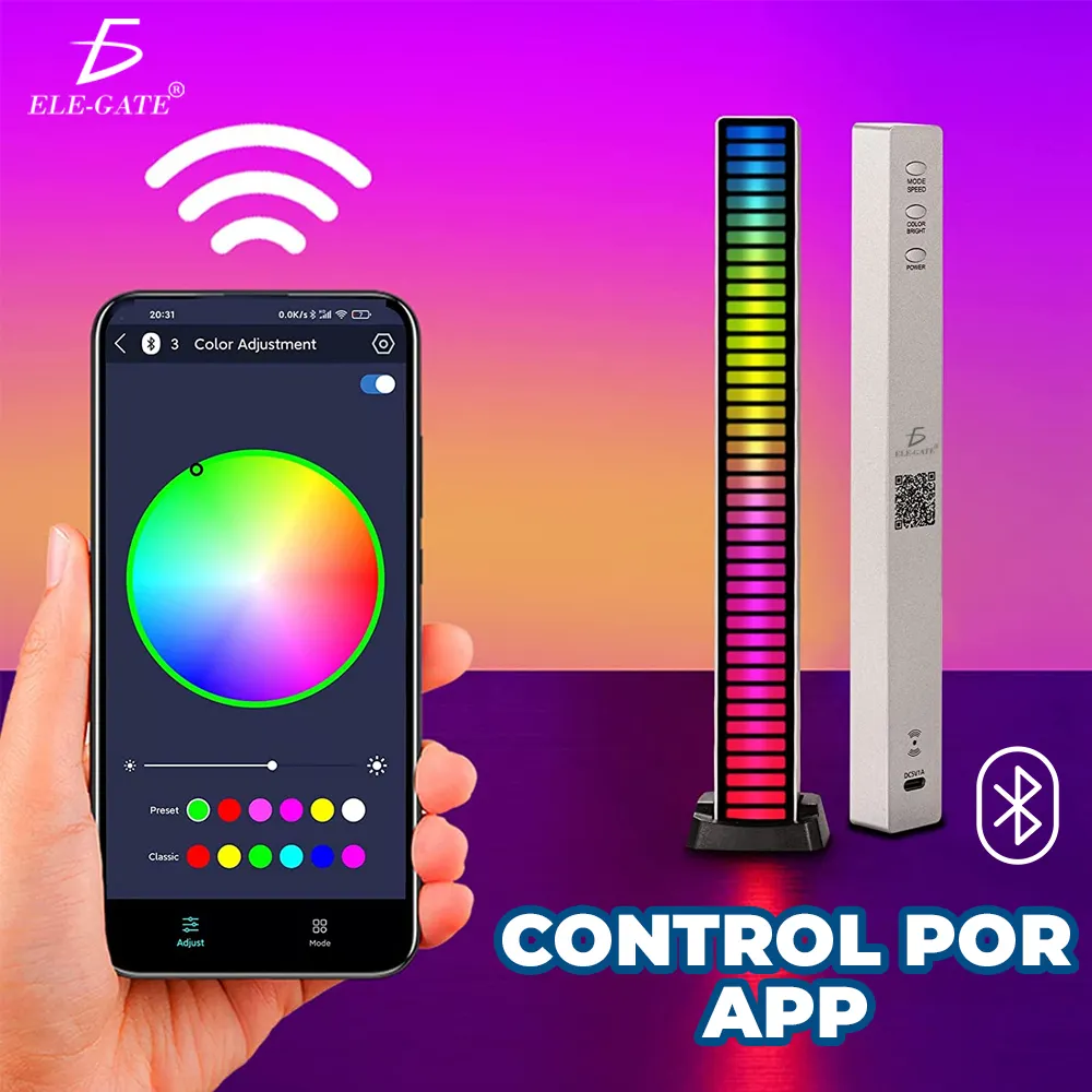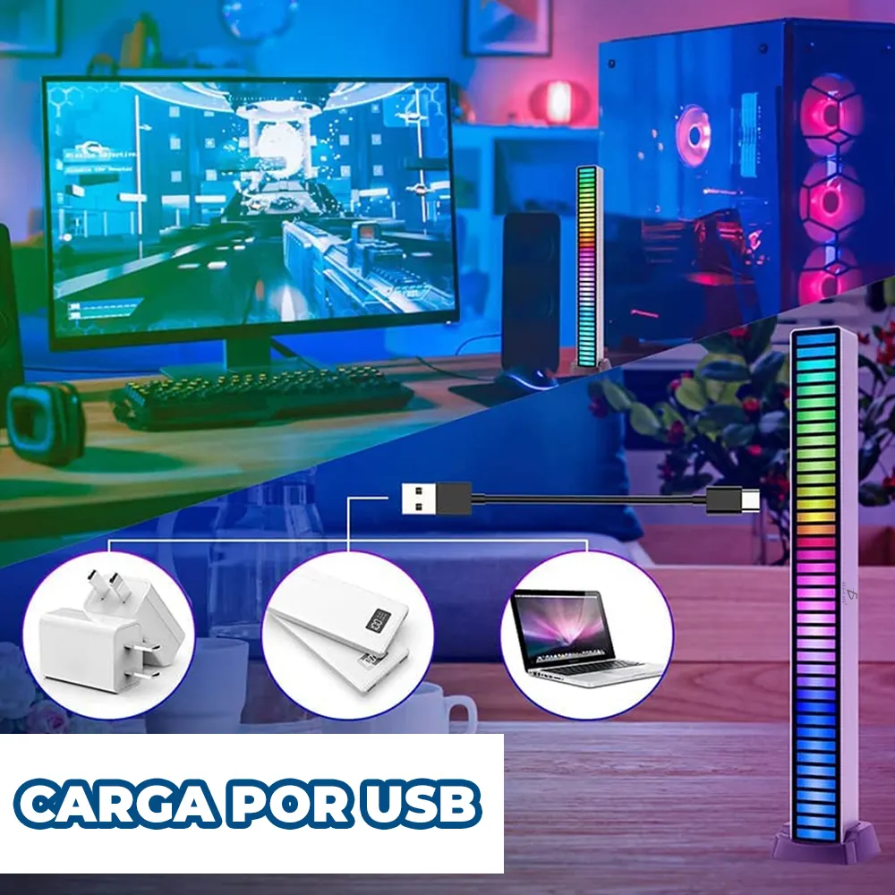Barra luz LED RGB Reactiva al Sonido, Indicador de Nivel de Música, Luz Ambiental, Controlada por Sonido, Rítmica Activada por Voz para Fiestas, Coche, Escritorio.