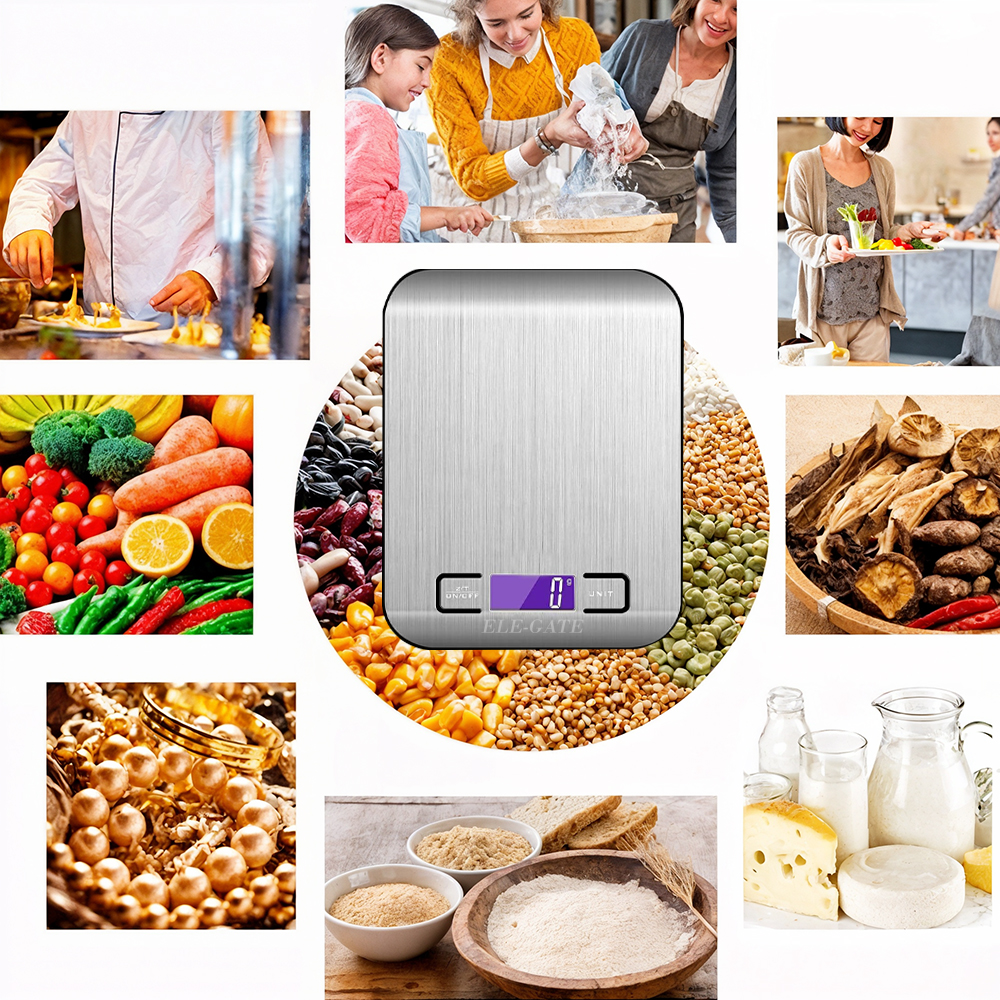 Su función de tara, junto con la conversión de unidades (g, oz, ml y lb), la hace perfecta tanto para uso doméstico como profesional. La pantalla LCD retroiluminada garantiza una lectura clara en todo momento, mientras que su superficie de acero inoxidable aporta durabilidad, estilo y una limpieza sencilla.