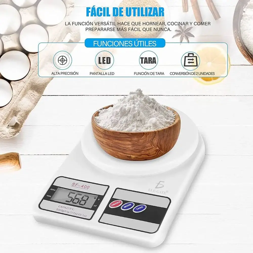 Báscula Digital Gramera de 1g a 5 kg. Practica Resistente. Máxima precisión y calidad con luz amigable en la pantalla.