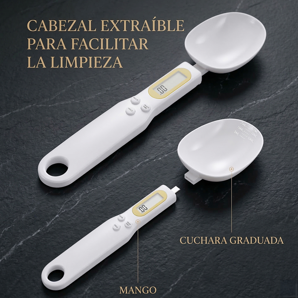 Optimiza tus recetas con esta báscula digital tipo cuchara de alta precisión, una herramienta imprescindible para cualquier cocina. Diseñada para medir ingredientes con exactitud, permite pesar desde 0.1 g hasta 500 g, garantizando resultados consistentes en repostería, cocina diaria o preparación de bebidas como café y té.