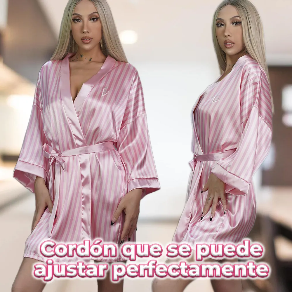 Envuélvete en elegancia y confort con esta exquisita bata tipo kimono de satén para mujer. Confeccionada con un lujoso tejido de satén, esta bata ofrece una sensación suave y sedosa que te hará sentir como la realeza cada vez que la uses.