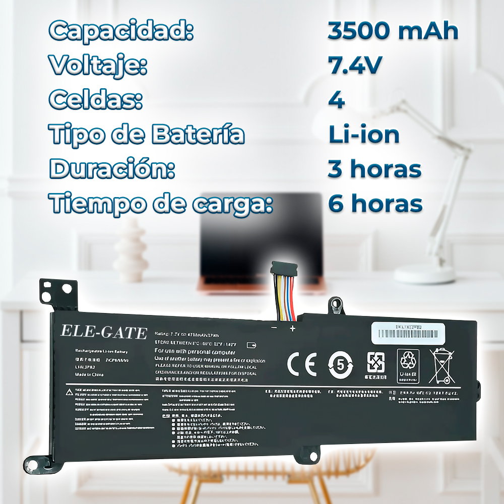 Batería de repuesto para laptops Lenovo IdeaPad, diseñada para ofrecer un rendimiento estable, seguro y duradero. Ideal para reemplazar baterías desgastadas o defectuosas y recuperar la autonomía original de tu equipo.