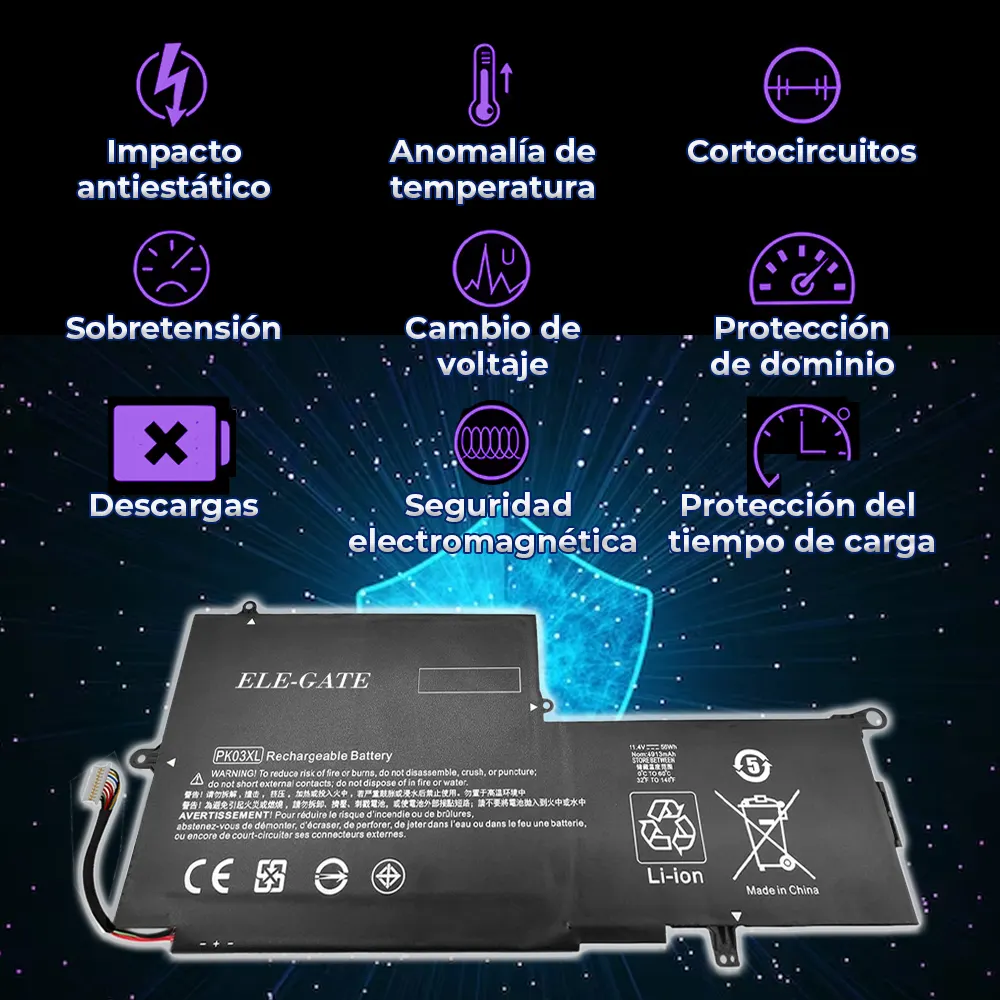 Optimiza el rendimiento de tu laptop HP Spectre con esta batería Ele-Gate de alta capacidad. Con una potencia de 4913mAh y 56W a 11.4V, esta batería es compatible con la serie X360 G1 G2 13 4000. Disfruta de hasta 800 a 500 ciclos de carga, lo que garantiza una mayor durabilidad y horas de uso para tu dispositivo. Además, su alta tasa de reciclaje contribuye a un menor impacto ambiental. ¡Aprovecha al máximo tu laptop con esta batería de calidad.