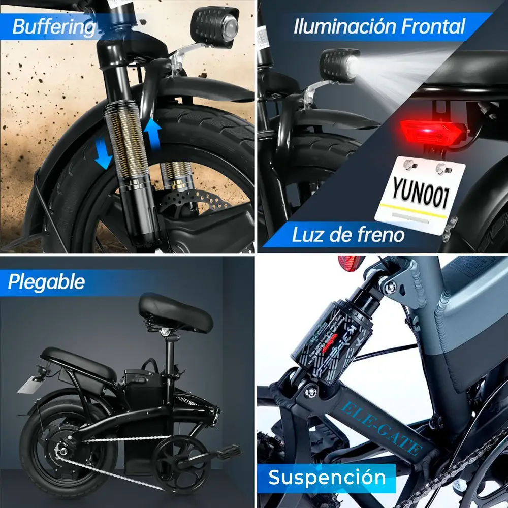 BICICLETA ELECTRICA PLEGABLE HOG.30 DE ALUMINIO CON MOTOR DE 250W Y BATERIA DE LITIO 36V5.2AH