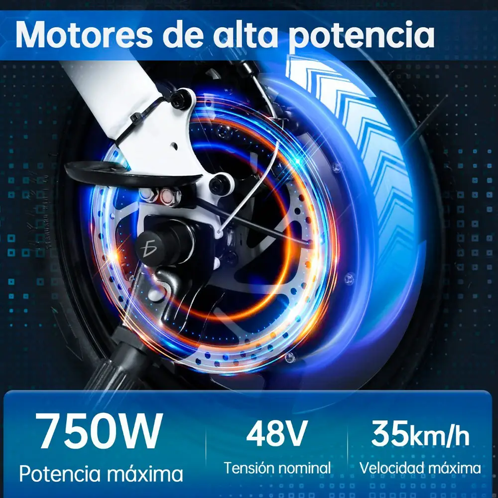 La batería de Litio es mas eficiente, no contamina y pesa mucho menos que una batería de Acido de Plomo (SLA), se carga de 3 a 5 horas y tiene una duración de entre 20 a 30Km.