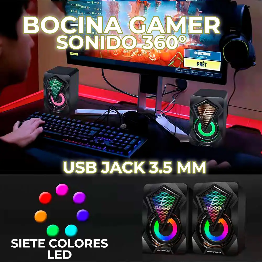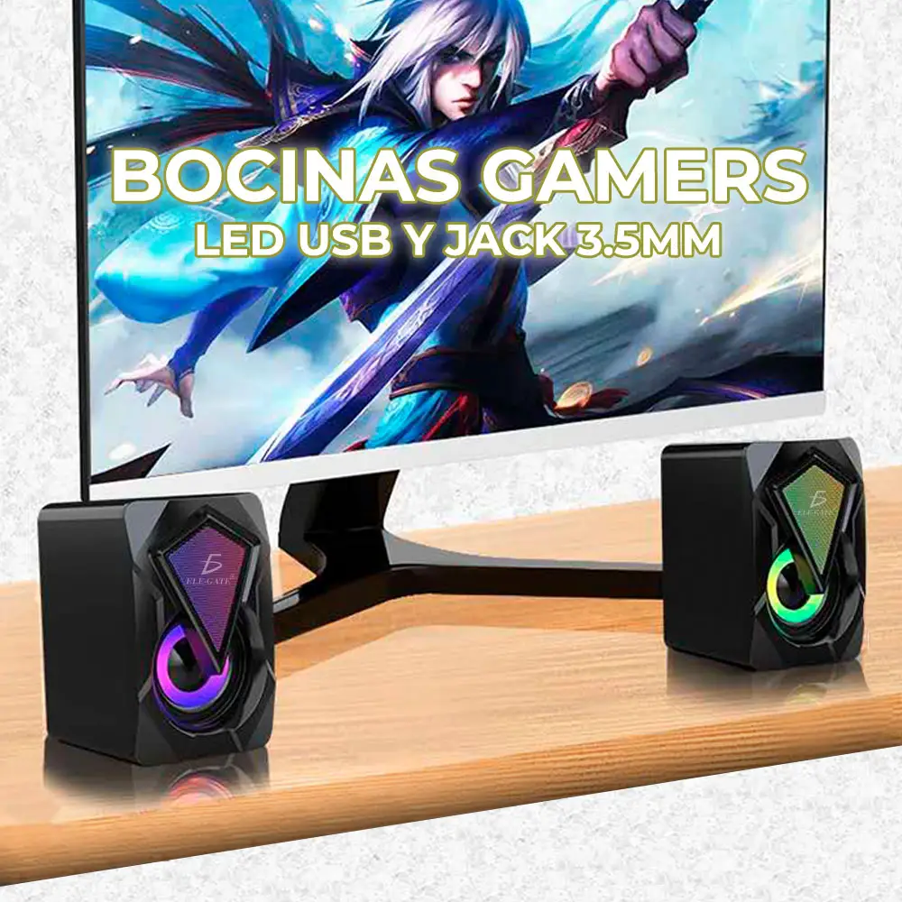 Amplifica los sonidos de tus dispositivos con este increíble par de bocinas que ofrece una gran calidad de sonido. Cuentan con sorprendentes luces Led tipo RGB que iluminarán de forma espectacular tus espacios. Su tamaño compacto, además, las hace portátiles y sumamente prácticas. Y su entrada universal 3.5mm y conexión USB les proporcionan una alta compatibilidad con todos tus dispositivos. Disfruta de una mejor experiencia auditiva y visual en tus series y películas. Están diseñadas especialmente para que completes tu set gamer.