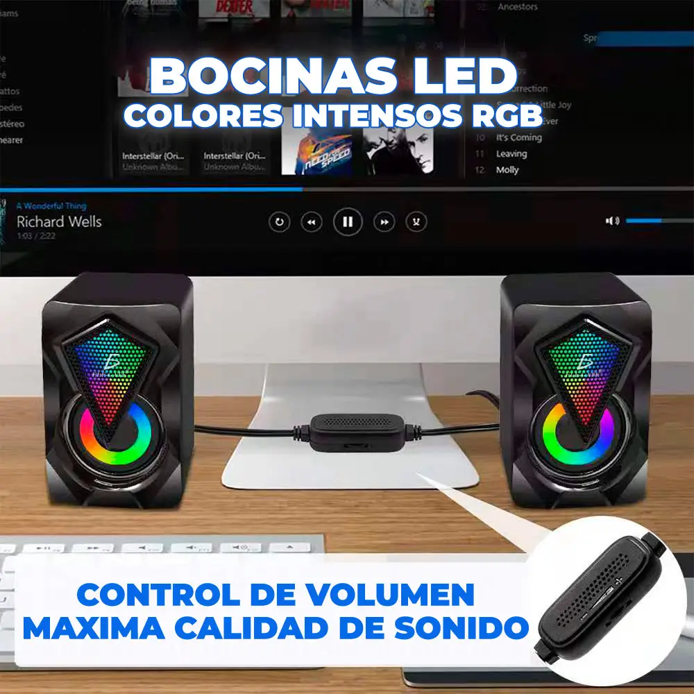 -2 bocinas alámbricas con luces Led con conexión alámbrica 3.5mm y USB