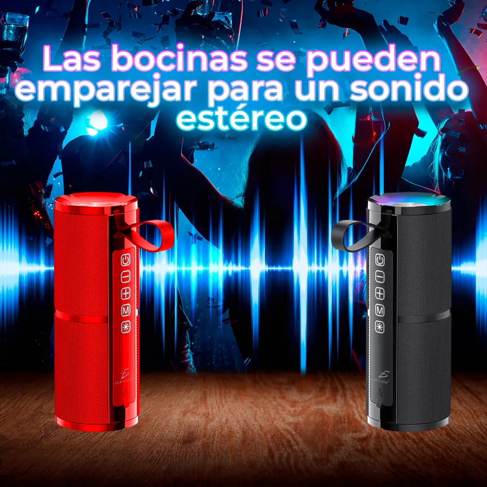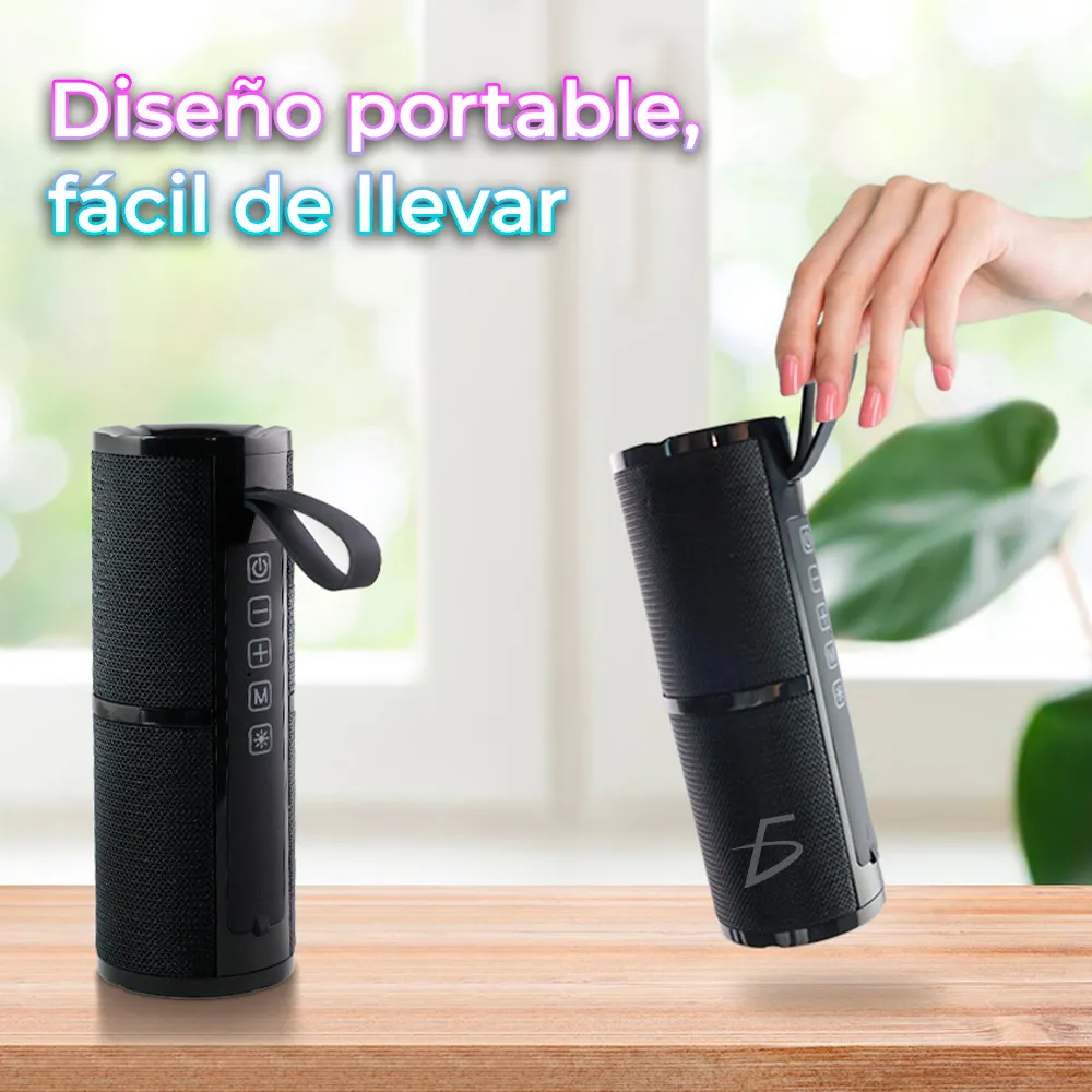 La Bocina Bluetooth 5.1 Portátil Inalámbrica con Sonido Estéreo HD es la compañera perfecta para los amantes de la música que buscan una experiencia de audio de alta calidad con la libertad de la portabilidad y la conectividad versátil. ¡Disfruta de tu música en cualquier lugar y momento!