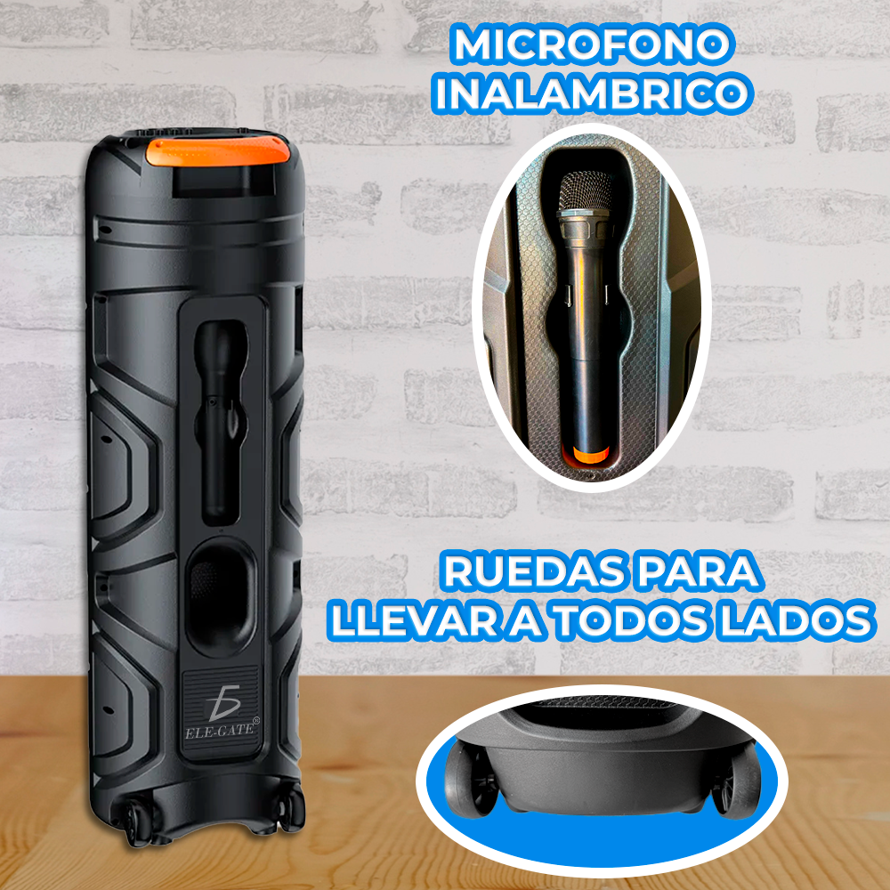 Incluye micrófono inalámbrico y control remoto, ideales para animar tus eventos o cantar tus canciones favoritas. Su batería recargable de 3000 mAh brinda horas de reproducción continua antes de necesitar recarga.