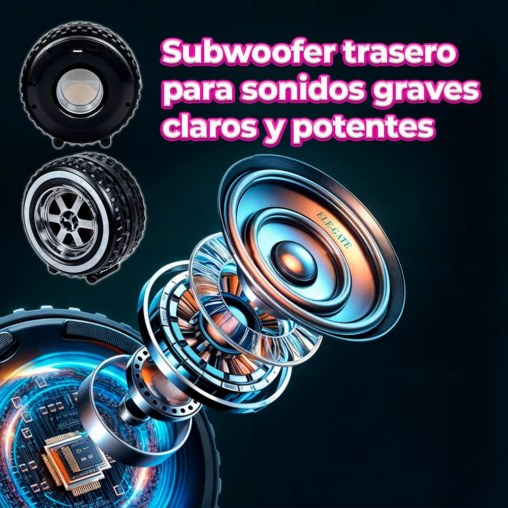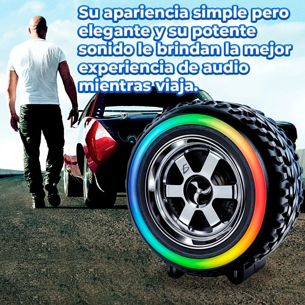 Versatilidad de Uso: Perfecta para fiestas en casa, reuniones al aire libre o simplemente relajarte en casa, esta bocina en forma de llanta proporciona la banda sonora perfecta y la iluminación ambiental para cualquier ocasión.