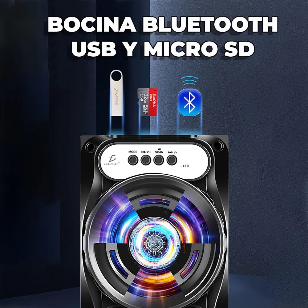 Dale un toque increíble a tu fiesta con la luz led de colores que viene incluida en tu bafle.